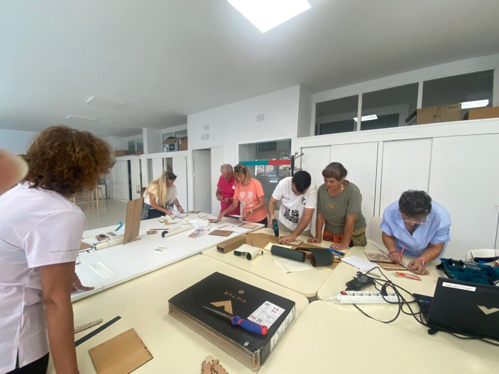 Además, Encarna Morales Casas, maestra de profesión y actualmente artesana, acompañó a las personas participantes de esta actividad, compartiendo con el grupo sus conocimientos sobre técnicas de encuadernación.